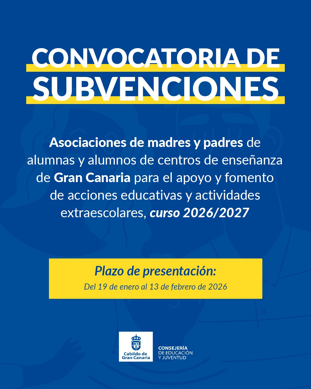 Convocatoria de subvenciones para asociaciones de madres y padres de alumnas y alumnos de centros de enseñanza de Gran Canaria para el apoyo y fomento de acciones educativas y actividades extraescolares curso 2026/2027