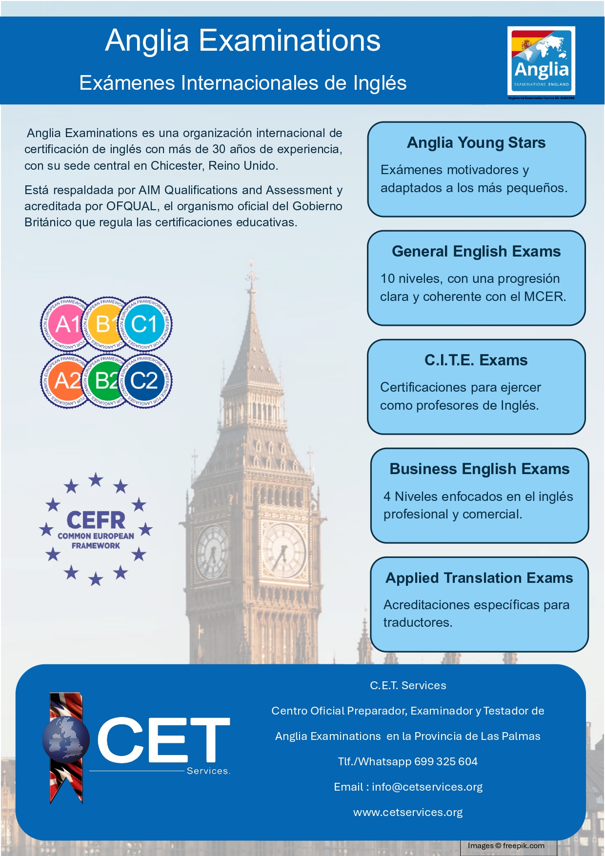 C.E.T. Services - Centro Oficial Preparador, Examinador y Testador de Anglia Examinations.