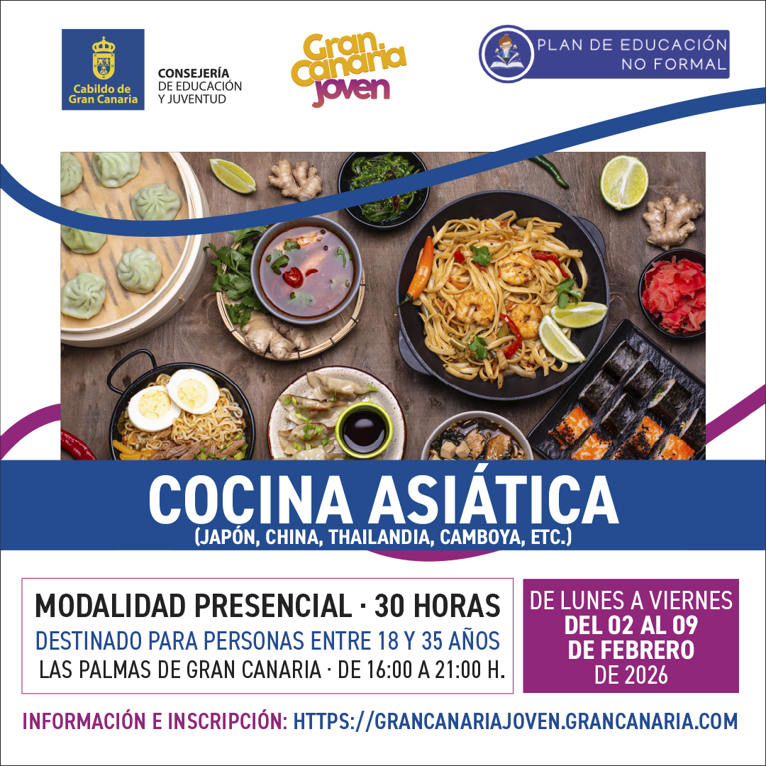 -Las plazas se asignarán por riguroso orden de inscripción en https://grancanariajoven.grancanaria.com. Una vez estés registrado/a entras en "Mi cuenta", te logueas y vas a "Actividades", buscas el curso y te inscribes.