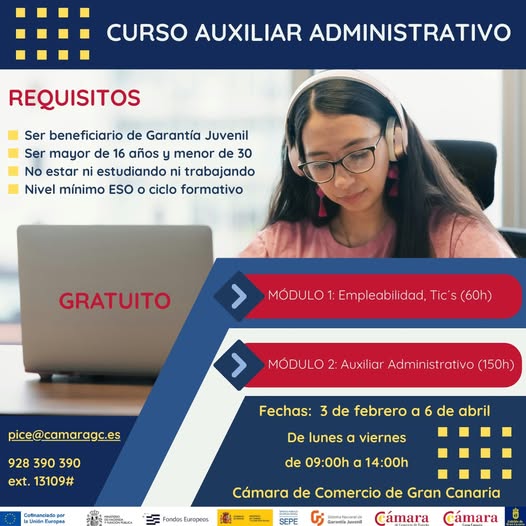 Curso Auxiliar Administrativo – Febrero 2026 (Cámara de Comercio de Gran Canaria)