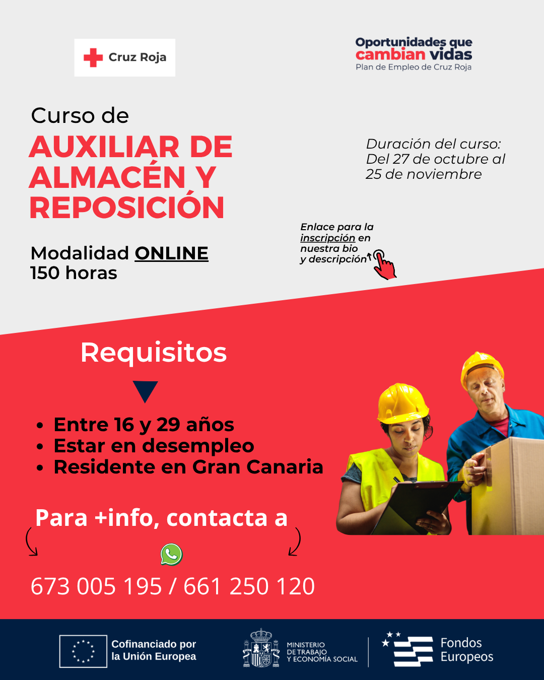 • Almacén  y reposición ( de 16 a 29 años) on line INICIO EL 27/10/2025  150 horas.