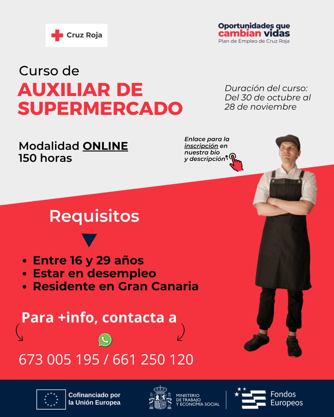 • Auxiliar de supermercado  ( de 16 a 29 años) on line INICIO EL 30/10/2025 150 horas.