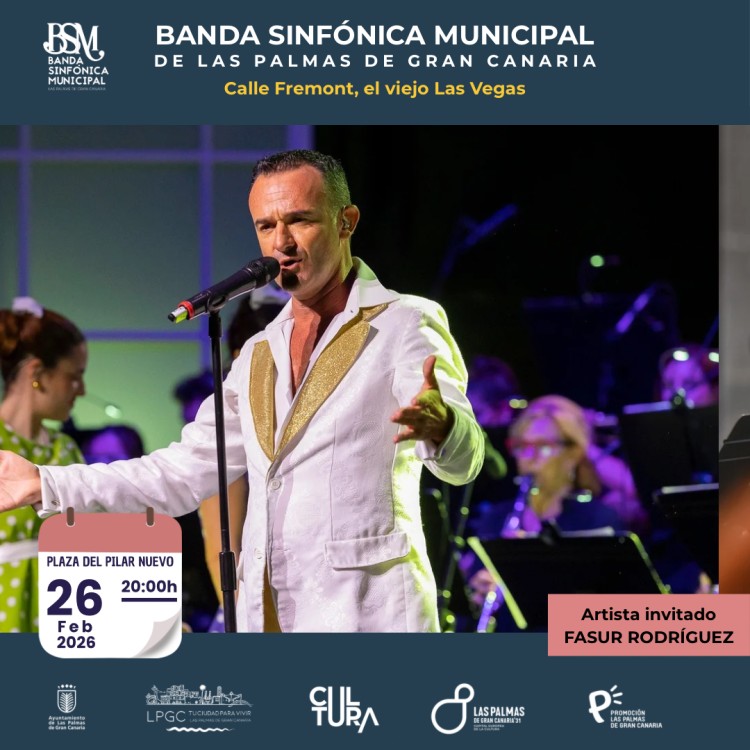 Artistas como Frank Sinatra, Dean Martin o Elvis Presley fueron precursores de los legendarios shows que aún hoy forman parte del imaginario del viejo Las Vegas, la ciudad de las segundas oportunidades. Canciones de aquella época son las que podrán escucharse en este concierto, interpretadas por la Banda Sinfónica Municipal de Las Palmas de Gran Canaria junto al crooner Fasur Rodríguez, quien dará voz a temas emblemáticos como More, Cry Me the River, Blue Moon o Come Fly with Me.